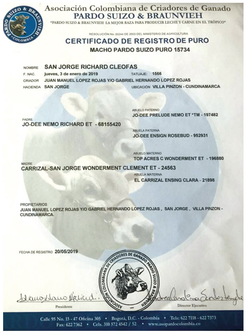 NÚMERO:1566 FECHA DE NACIMIENTO: 03/01/2019 TIPO: LECHE REGISTRO: 15734