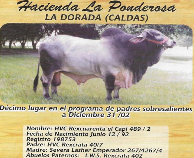 NOMBRE COMPLETO: CAPI 697-5 NÚMERO: 697-5 REGISTRO: 299344 FECHA DE NACIMIENTO: 03/11/1995 TIPO: CARNE – RAZA: BRAHMAN GRIS PADRE: HVC REXCUARENTA EL CAPI 489 MADRE: HVC ANDRES 436