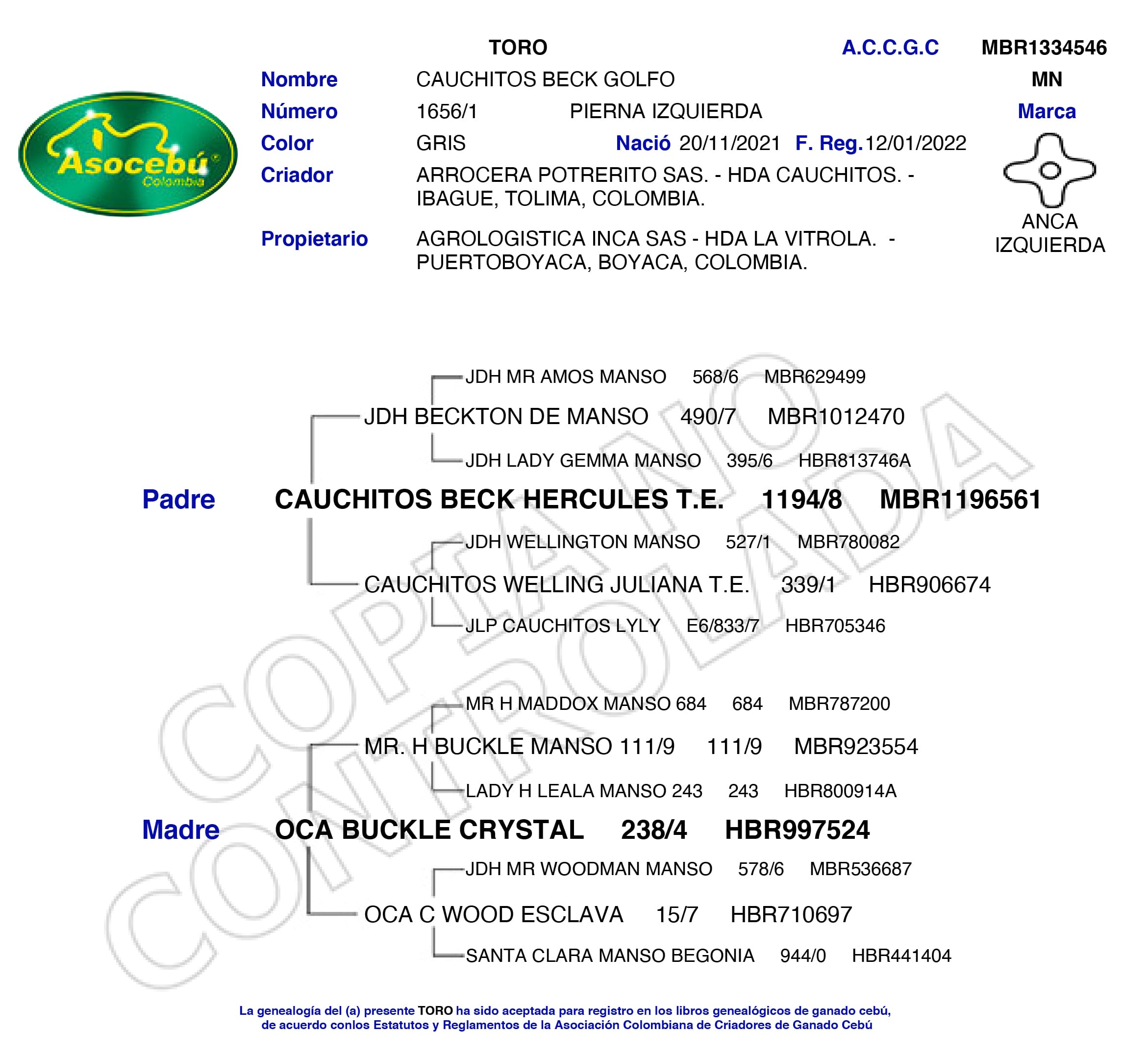 NÚMERO: 1656/1    REGISTRO: MBR1334546    FECHA DE NACIMIENTO: 20/11/2021