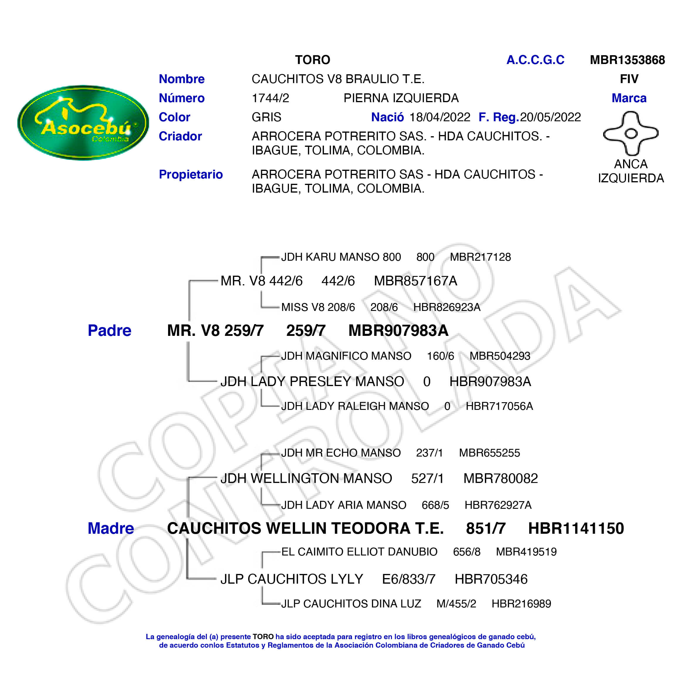 NÚMERO: 1744/2    REGISTRO: MBR1353868    FECHA DE NACIMIENTO: 18/04/2022