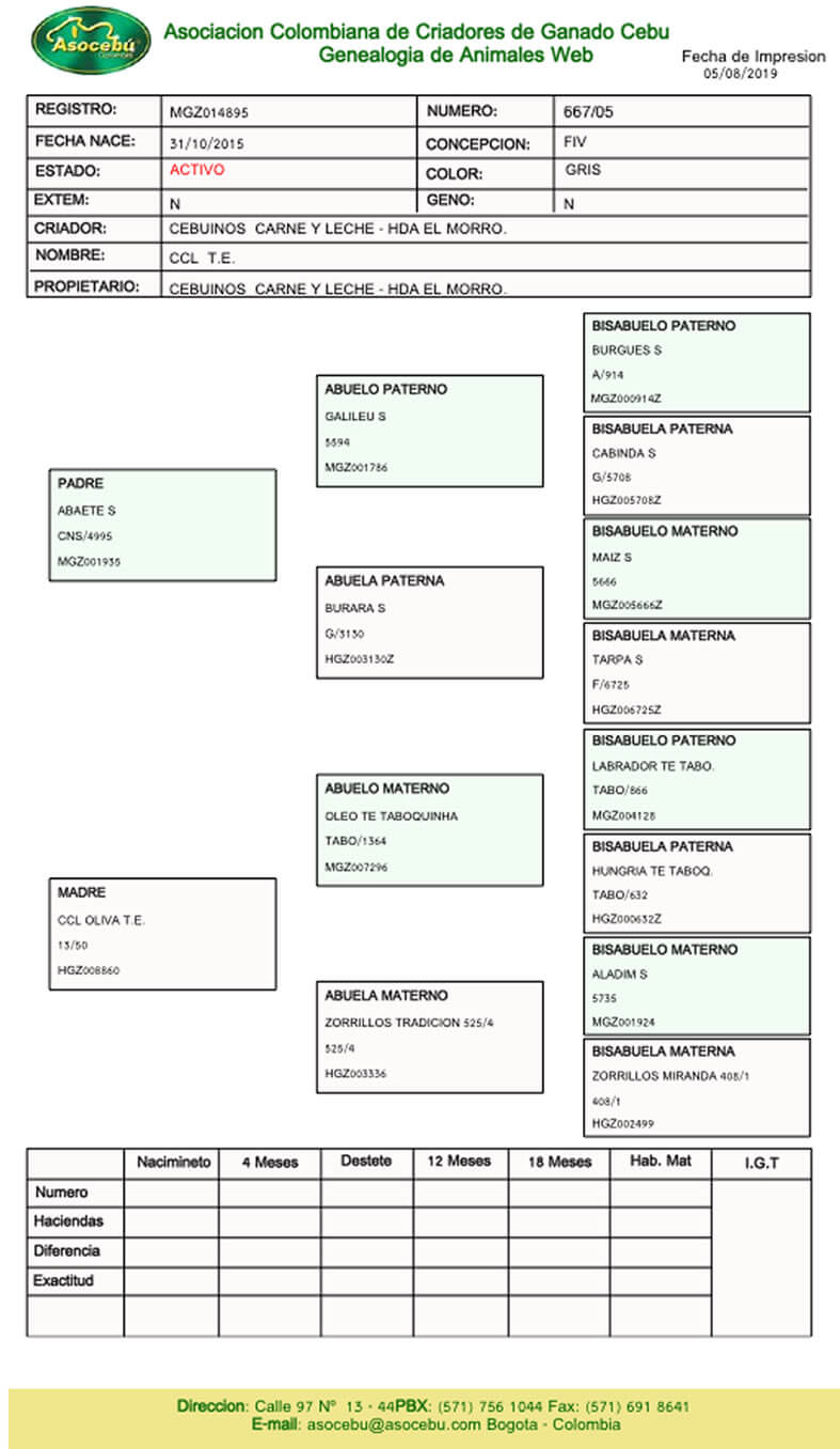 NÚMERO: 667-05    REGISTRO: MGZ014895    FECHA DE NACIMIENTO: 31/10/2015