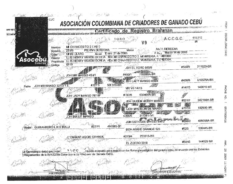NOMBRE COMPLETO: MI CHANCESITO 2 CHEO 229/5 NÚMERO: 229/5 REGISTRO: 615312 FECHA DE NACIMIENTO: 01/21/2005 TIPO: CARNE – RAZA: BRAHMAN GRIS PADRE: JDH MR MANSO 327/3 TE MADRE: GUITARRERO LHV BULLI