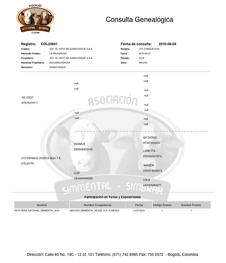NÚMERO: 0123    REGISTRO: COL25841    FECHA DE NACIMIENTO: 27/03/2015