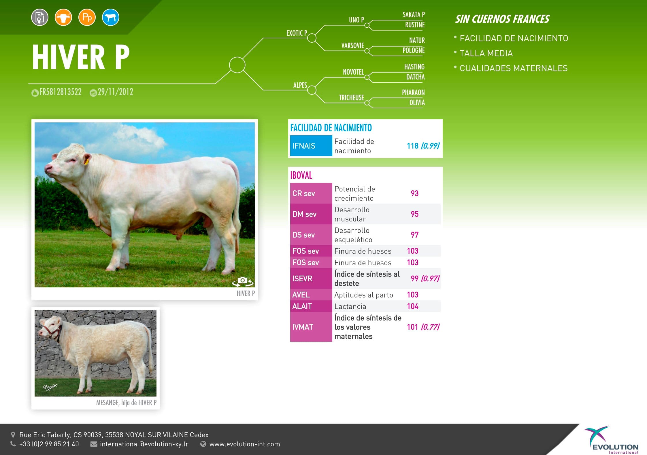 ÍNDICES: Pot. Crecimiento: 93 | Des. Muscular: 95 | Ín. Síntesis Destete: 99 | Ín. Valores Maternales: 101