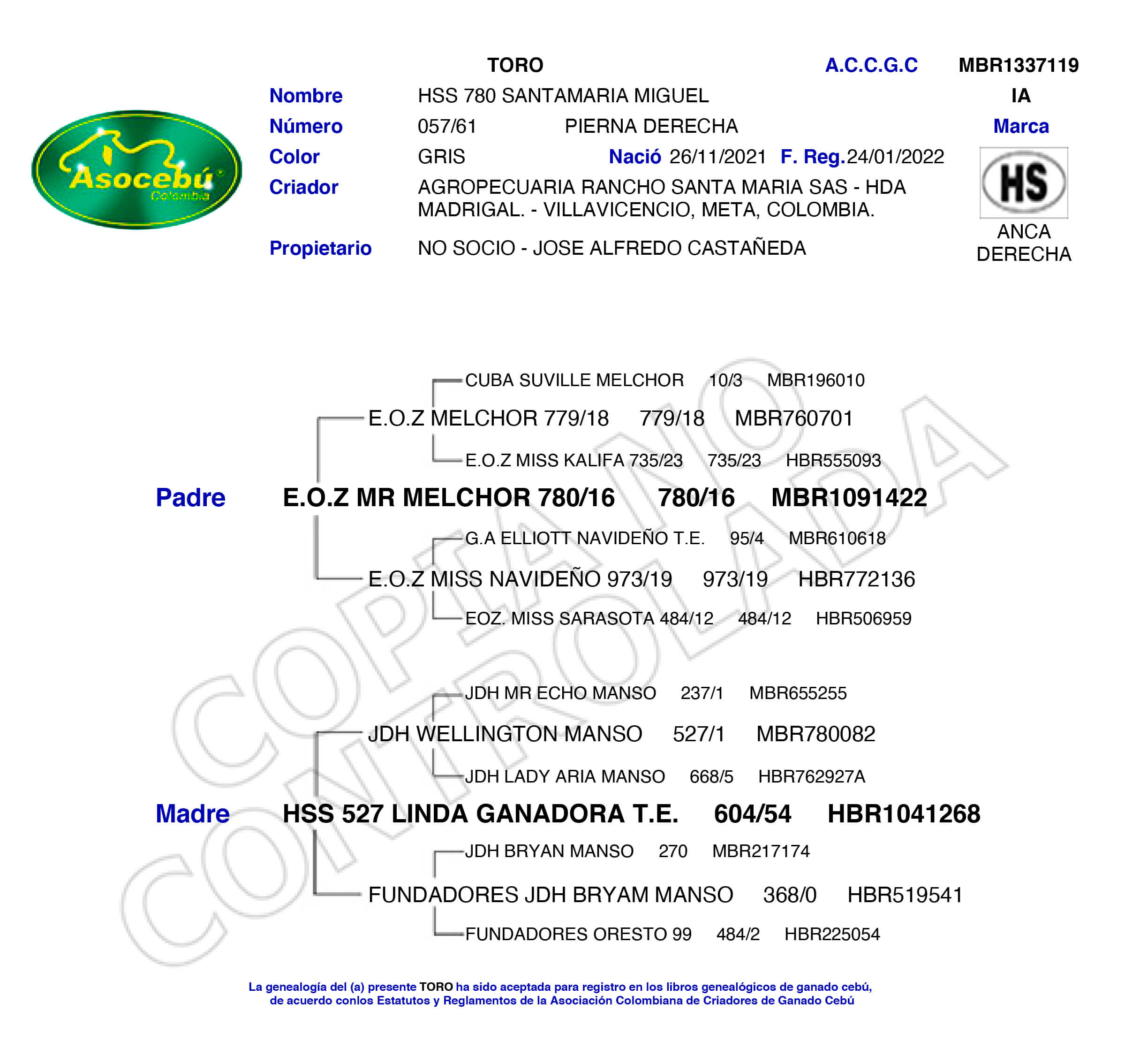 NÚMERO: 057/61    REGISTRO: MBR1337119    FECHA DE NACIMIENTO: 26/11/2021