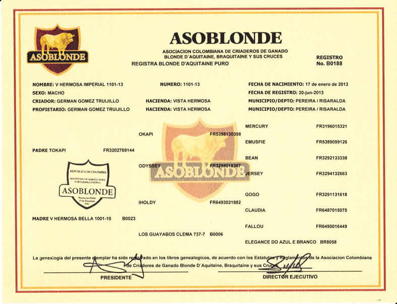 NÚMERO: 1101-13    REGISTRO: B0188    FECHA DE NACIMIENTO: 11/01/2013
