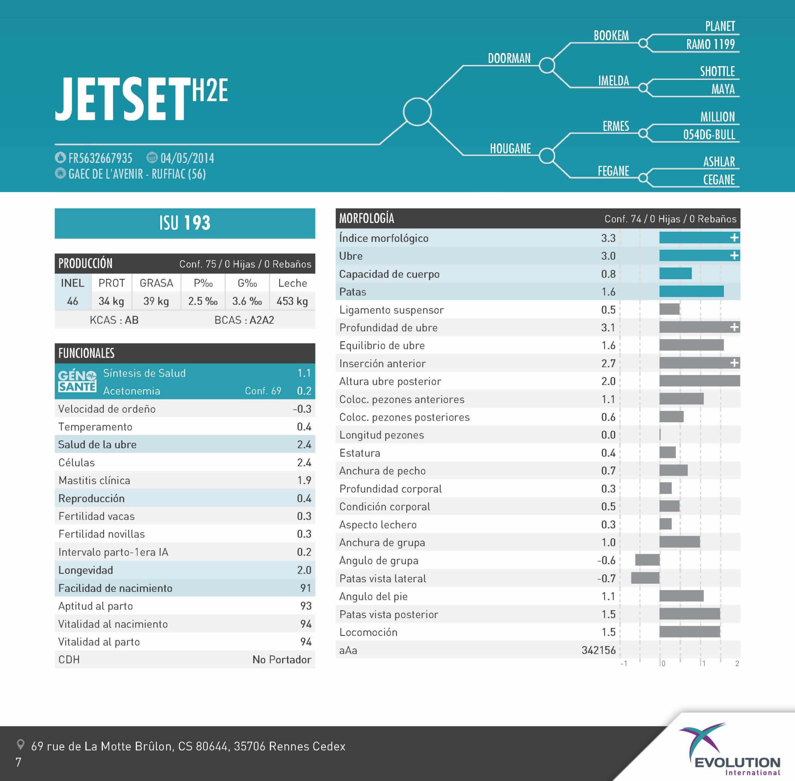 NOMBRE COMPLETO: JETSET H2ENÚMERO: N/A REGISTRO: FR5632667935 FECHA DE NACIMIENTO: 04/05/2014TIPO: LECHE – RAZA: HOLSTEIN NEGROPADRE: DOORMAN PADRE MATERNO: HOUGANE