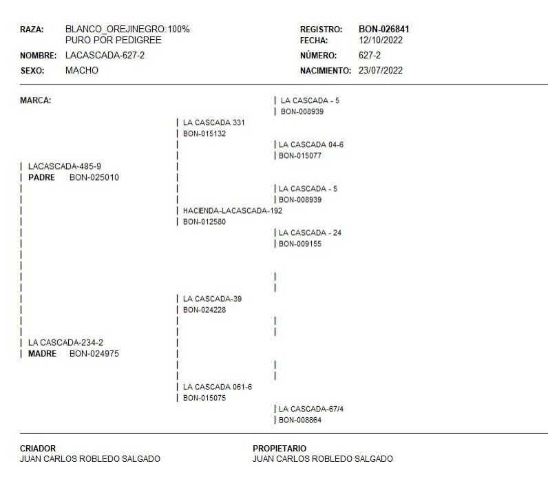 PADRE: LACASCADA 485-9    MADRE: LACASCADA 2342-2