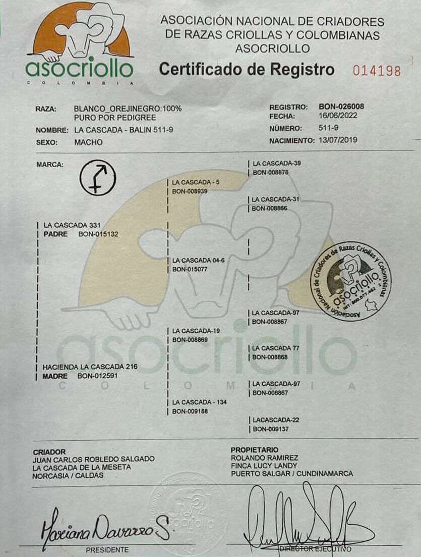 PADRE: LA CASCADA 331    MADRE: HACIENDA LA CASCADA 216