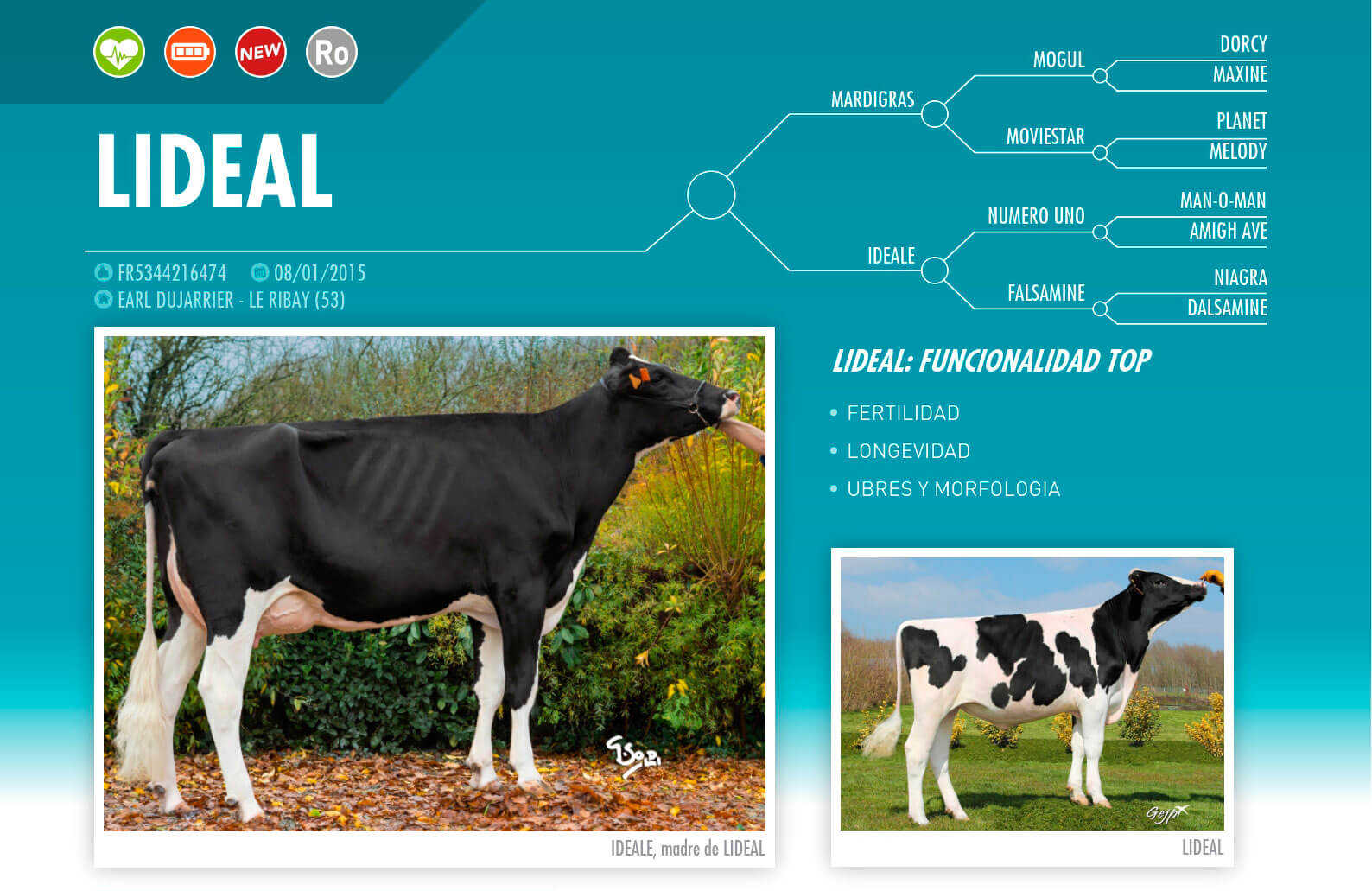 NOMBRE COMPLETO: LIDEALNÚMERO: N/A REGISTRO: FR5344216474 FECHA DE NACIMIENTO: 08/01/2015TIPO: LECHE – RAZA: HOLSTEIN NEGROPADRE: MARDIGRAS MADRE: IDEALE