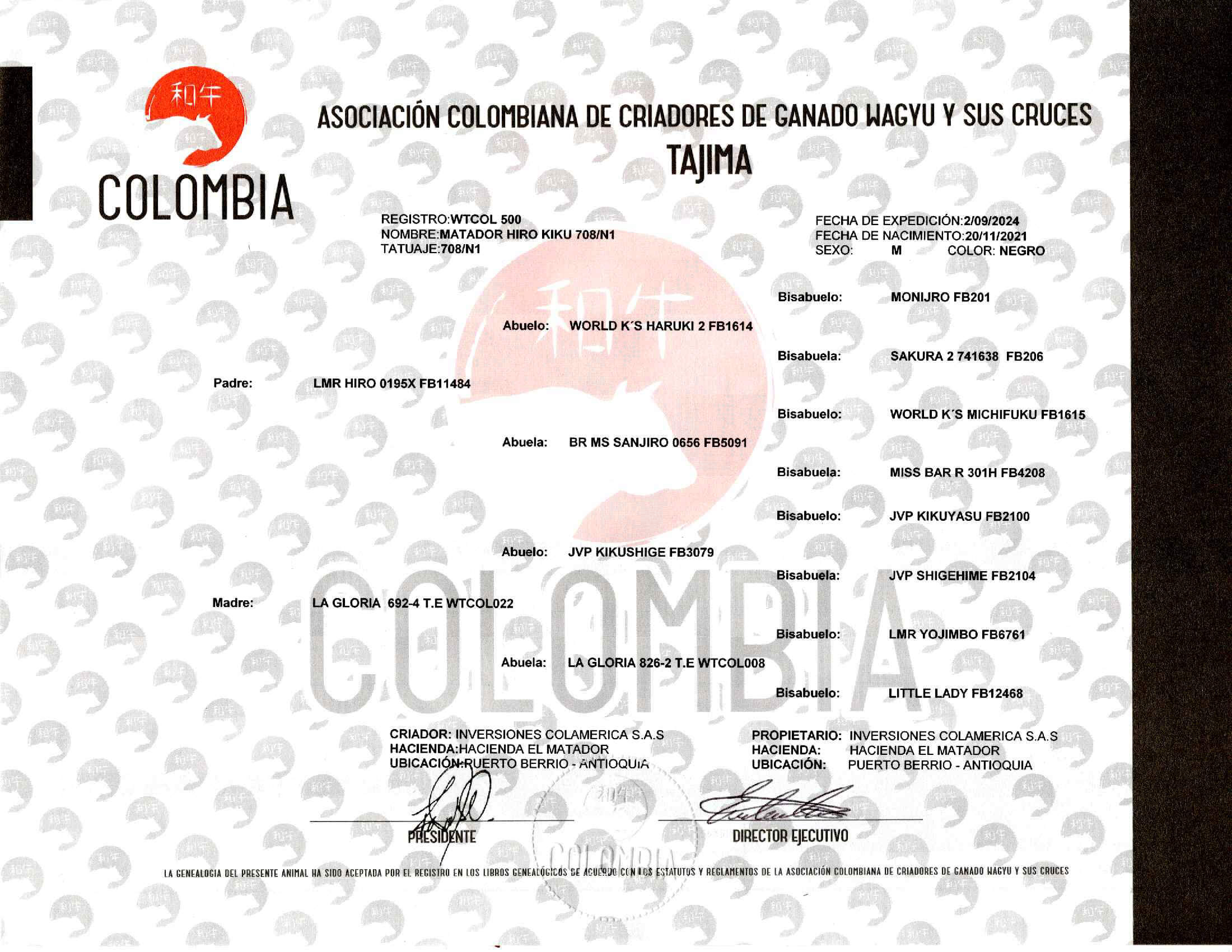 NÚMERO: WTCOL500    FECHA DE NACIMIENTO: 20/11/2021