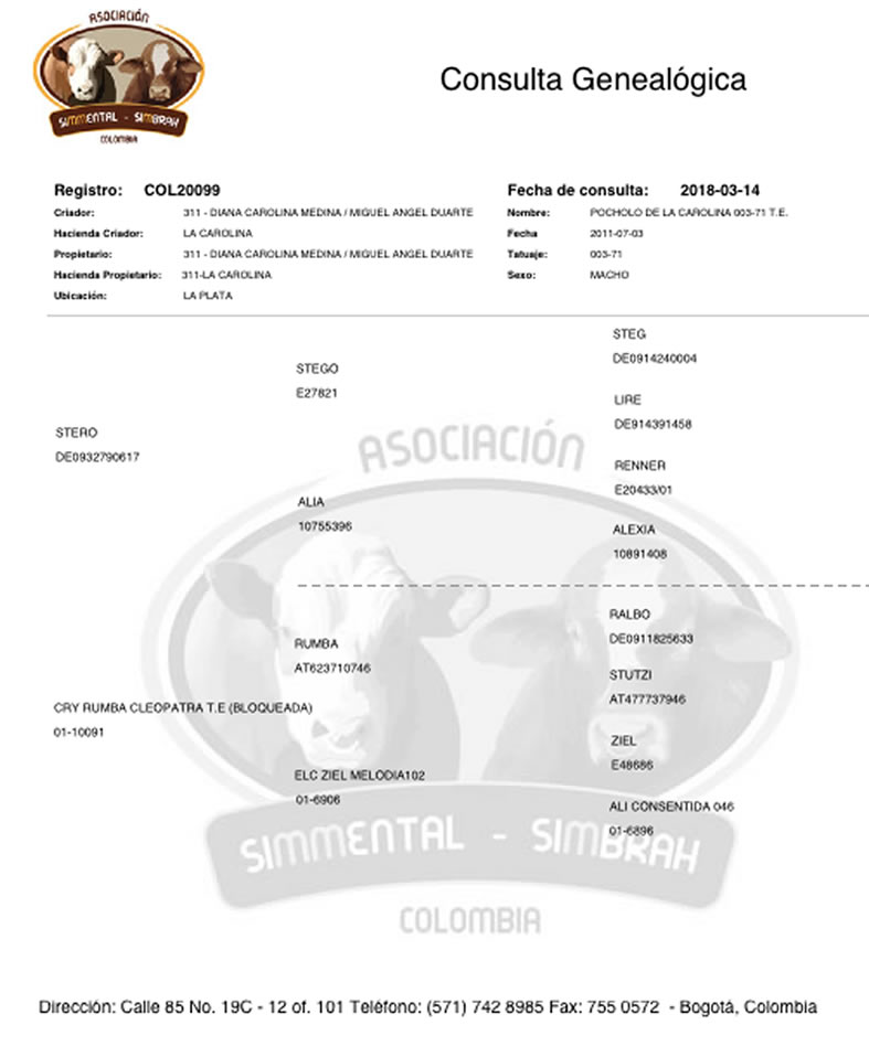 NÚMERO: 003-71    REGISTRO: COL20099    FECHA DE NACIMIENTO: 03/07/2011