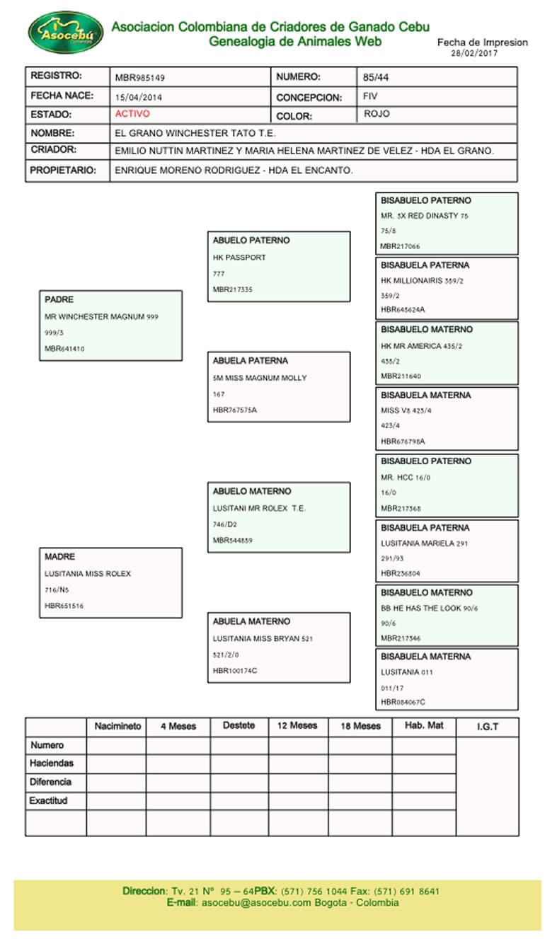 NOMBRE COMPLETO: MONTERREY REMEDY EL TATO 930/2 NÚMERO: 930/2 REGISTRO: 960874 FECHA DE NACIMIENTO: 07/08/2013 TIPO: CARNE – RAZA: BRAHMAN ROJO PADRE: MONTERREY RENEDY JOSÉ MADRE: MONTERREY ANTONIA 030-5