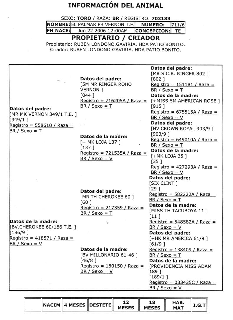 NOMBRE COMPLETO: EL PALMAR PB VERNON TE 711/6