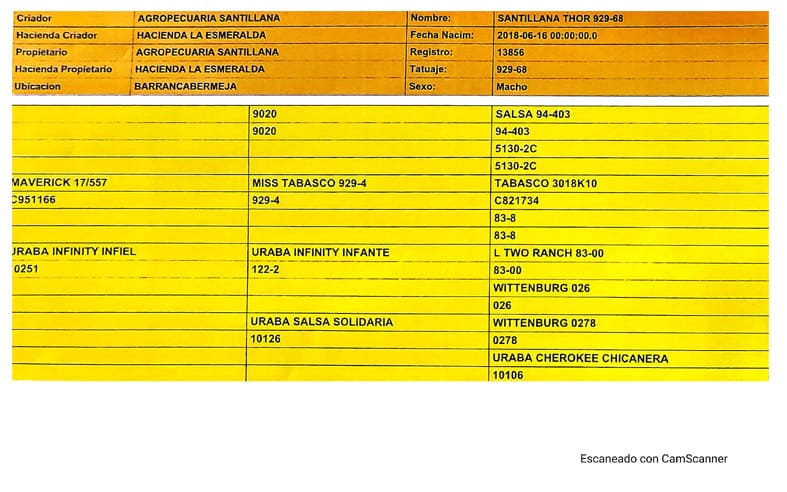 NOMBRE COMPLETO: YARUMA 213-4NÚMERO: 213-4 REGISTRO: 12012 FECHA DE NACIMIENTO: 17/05/2014TIPO: CARNE – RAZA: BEEFMASTERPADRE: VISION 905-7 MADRE: COLLIER FARMS 640-1